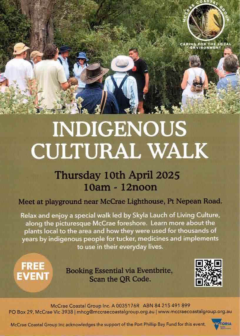 The McCrae Coastal Group Inc. was incorporated in 1997. Residents wanted to maintain the local indigenous vegetation around and about the heritage McCrae Homestead - home in the 1840s to early settlers Andrew and Georgiana McCrae.